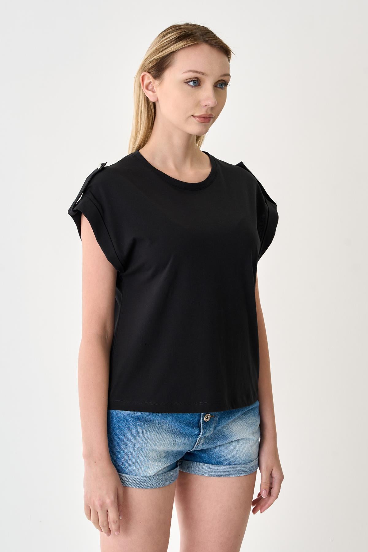 Kadın Apoletli %100 Pamuk Ekru Tişört, şıklığı ve rahatlığı bir arada sunar. Siyah rengin modern dokunuşunu yansıtan tasarımı, her türlü kombinle uyum sağlar. Pamuklu kumaşı sayesinde nefes alabilir ve hafif yapısı ile gün boyu konfor sunar. İster günlük kullanımda ister özel anlarda tercih edebileceğiniz bu tişört, rahat ve zarif bir stil için ideal bir seçenektir.