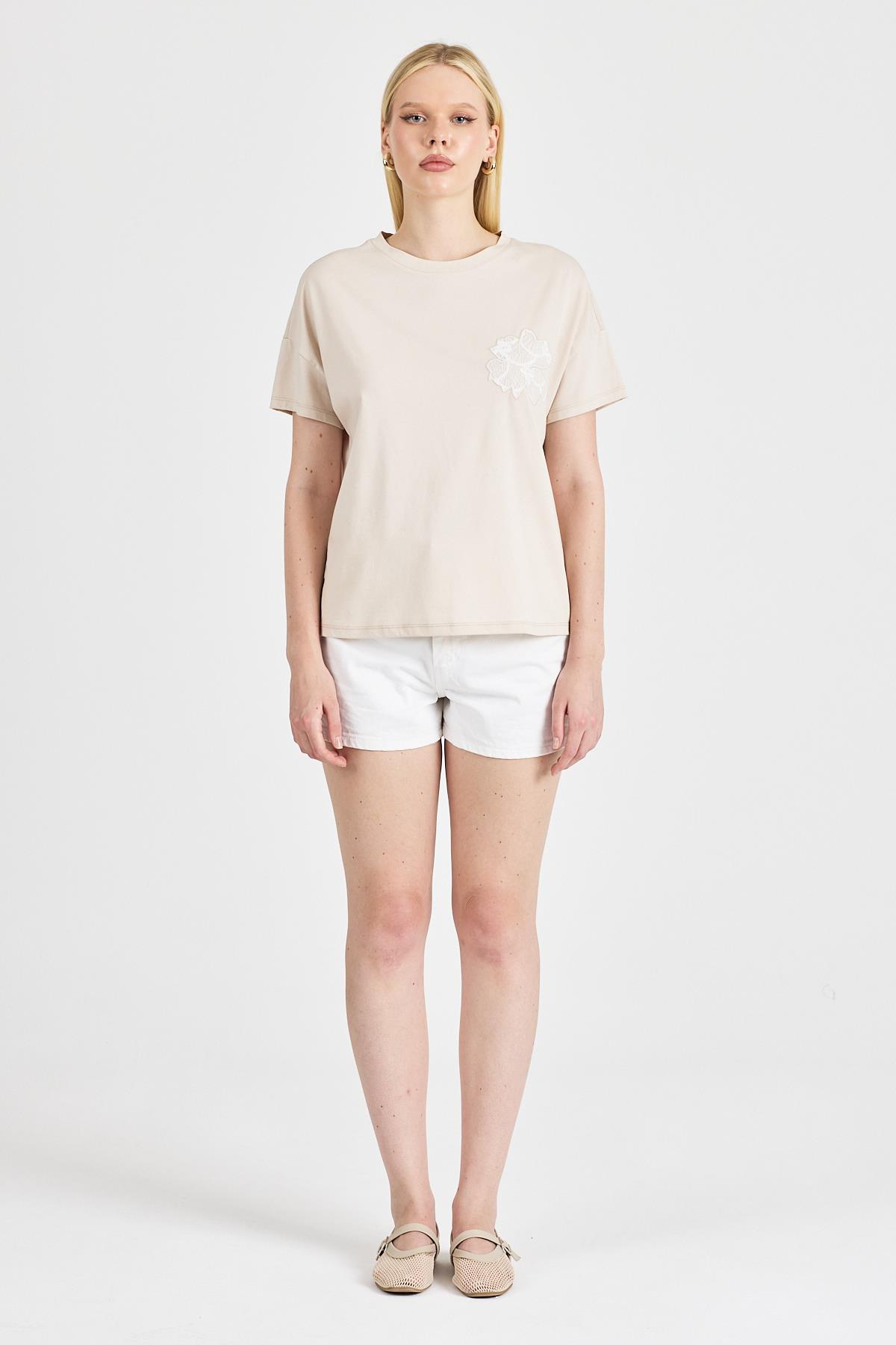 Kadın Dantel Nakışlı %100 Pamuk Taş Tişört, şıklığı ve rahatlığı bir arada sunar. Taş rengin modern dokunuşunu yansıtan tasarımı, her türlü kombinle uyum sağlar. Pamuklu kumaşı sayesinde nefes alabilir ve hafif yapısı ile gün boyu konfor sunar. İster günlük kullanımda ister özel anlarda tercih edebileceğiniz bu tişört, rahat ve zarif bir stil için ideal bir seçenektir.