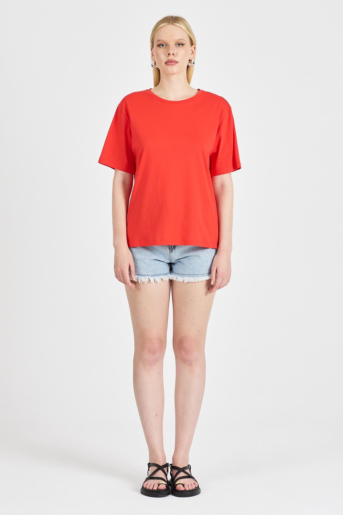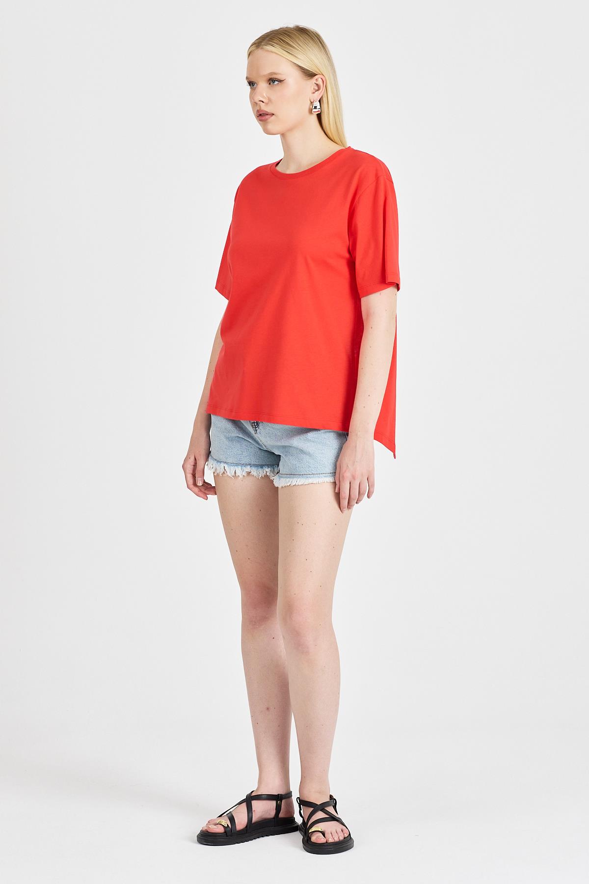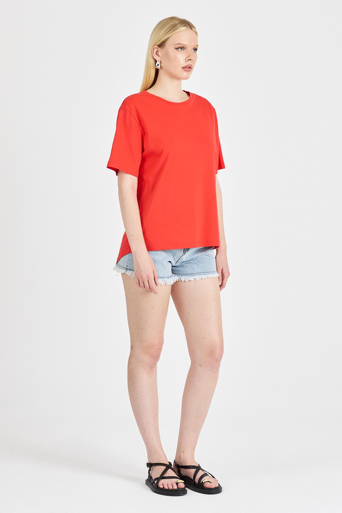 Kadın Sırt Detaylı %100 Pamuk Kırmızı Tişört, şıklığı ve rahatlığı bir arada sunar. Kırmızı rengin modern dokunuşunu yansıtan tasarımı, her türlü kombinle uyum sağlar. Pamuklu kumaşı sayesinde nefes alabilir ve hafif yapısı ile gün boyu konfor sunar. İster günlük kullanımda ister özel anlarda tercih edebileceğiniz bu tişört, rahat ve zarif bir stil için ideal bir seçenektir.